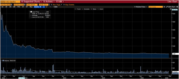 Chart of Allbirds (BIRD) Since November 2021 IPO