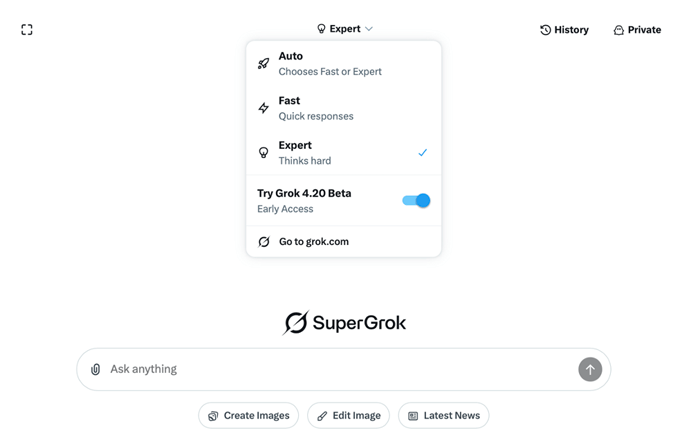 Since you use Grok, if you’d like to experiment with Grok 4.2 now, you have to toggle the switch as shown below to access the “Grok 4.20 Beta.”
