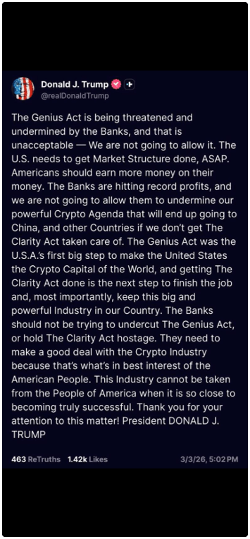 The level of engagement right now by the industry in D.C. is incredible on CLARITY and related legislation. The work has been monumental. Designing market structure for a new class of financial assets is extremely complex. The work is getting done, and we’ll get the market structure bill passed.