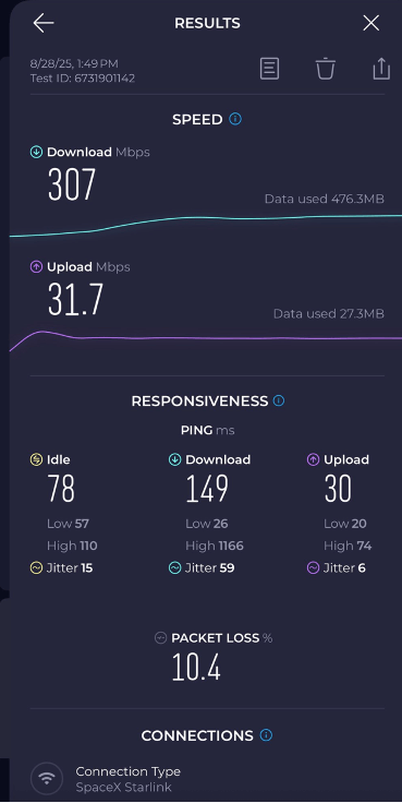 This July, Starlink announced that it had reached 7 million subscribers in about 150 countries/territories. Starlink currently has almost 8,100 operational satellites in orbit right now delivering unbelievable performance. Below is a screenshot of a speed test on a United flight delivering speeds above 300 Mbps.