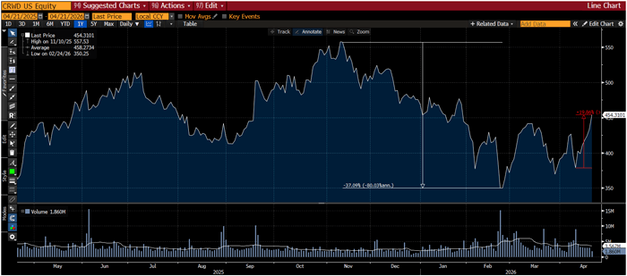 CrowdStrike, for example, fell 37% from November through February on the belief that Anthropic would become a competitor rather than a partner.