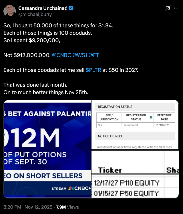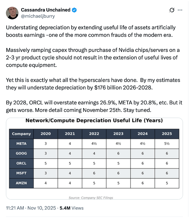 Michael Burry on X, November 3, 2025 | Source: X @michaeljburry