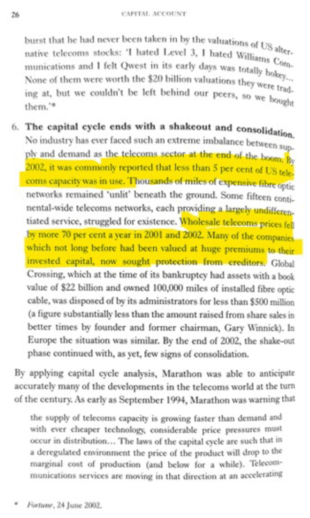 That was followed by the economic implications of having a glut of capacity over the newly built telecoms networks at the time…
