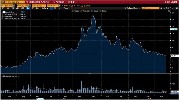 Oklo is down 68% from its highs, but still significantly above its initial $10 share price, now sitting around $55.