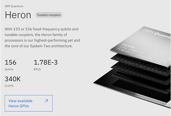 IBM’s approach to quantum computing is a superconducting quantum computer. Its most advanced superconducting quantum semiconductor is its Heron, which comes in either 133 or 156 physical qubits.