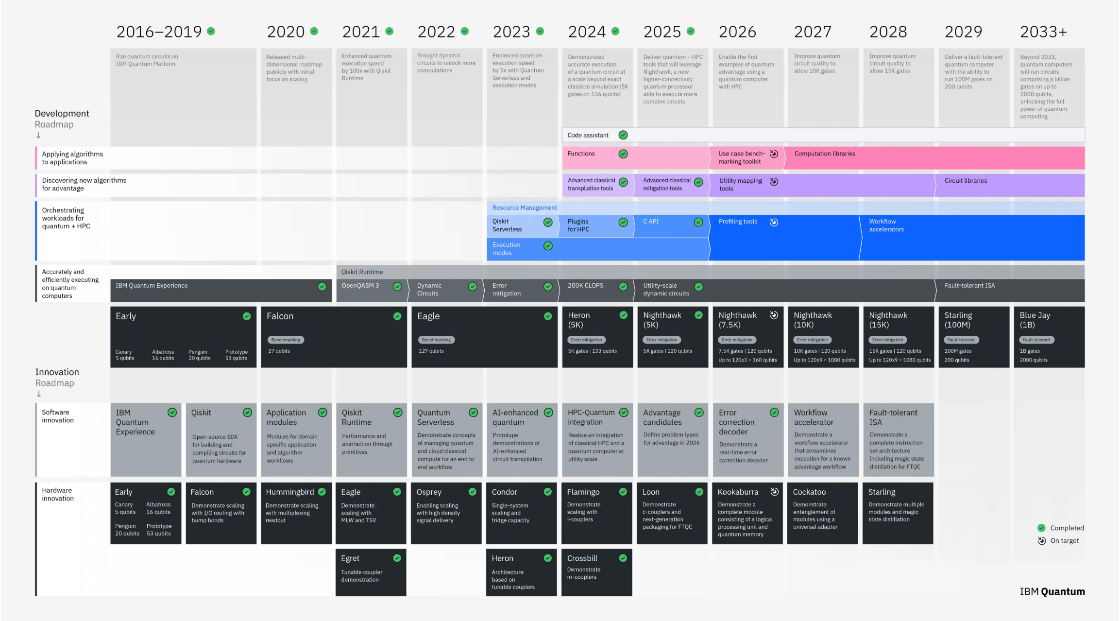 IBM won’t manufacture its 200-qubit quantum semiconductor Starling until 2029, and its 2,000-qubit semiconductor Blue Jay is forecasted out to 2033+.