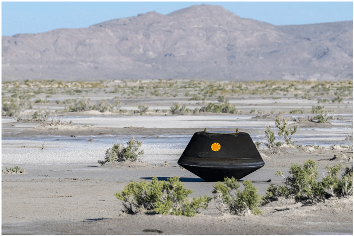OSIRIS-REx – after successfully traveling to, orbiting, and collecting 121.6 grams of samples from Bennu – returned to Earth and dropped the sample return capsule shown earlier into Earth’s atmosphere for analysis. The capsule descended by parachute to Utah within about a mile of its intended target.