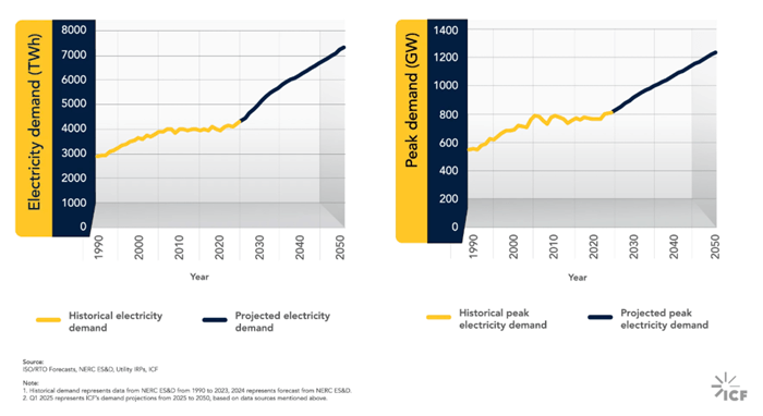 ICF International’s charts show U.S. electricity demand rising steadily over the next 25 years.