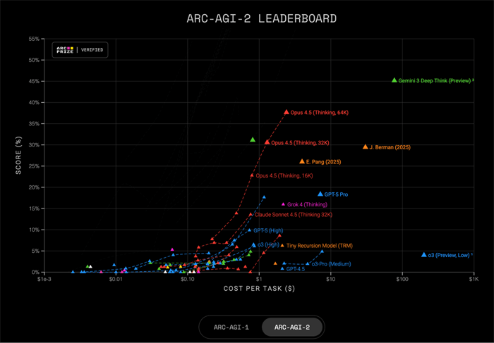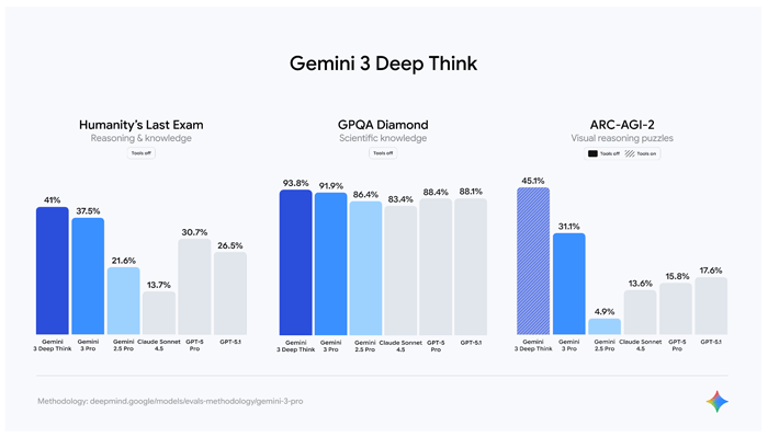 Now, to Google’s credit, its largest performance jump came in the results of the ARC-AGI-2 benchmark, the other AGI-centric benchmark widely looked at by the industry. Gemini 3 Deep Think jumped to 45.1% compared to Gemini 2.5 Pro, which was only 4.9%.