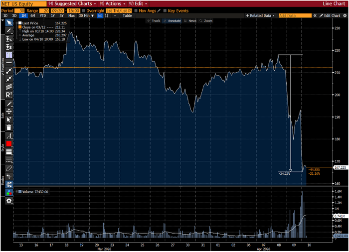 1-Month Chart of Cloudflare (NET)