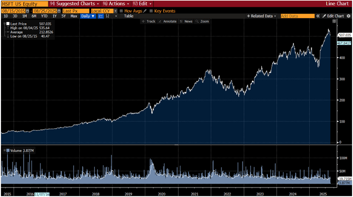 10-year Chart of Microsoft (MSFT) | Source: Bloomberg