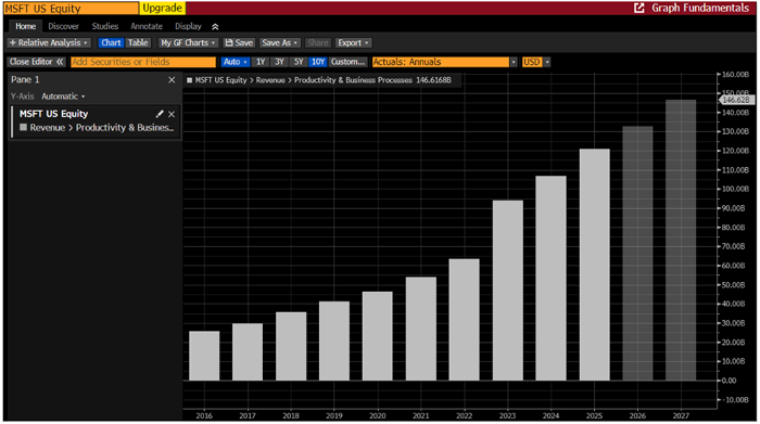 10-Year Chart of Microsoft’s Productivity Software Segment | Source: Bloomberg