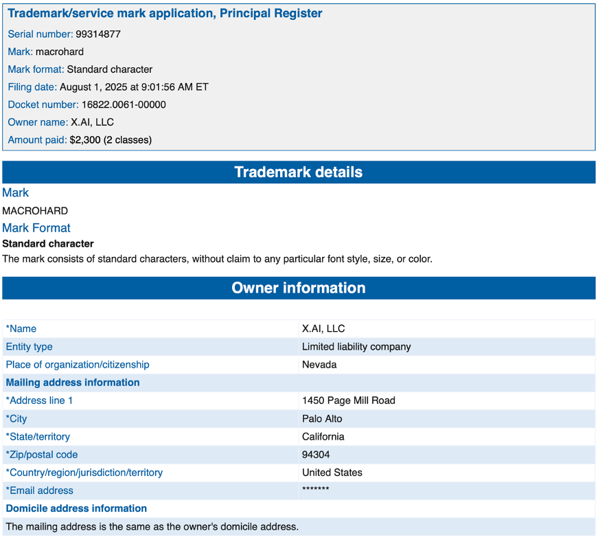 Earlier this month, on August 1, a trademark application was filed for “MACROHARD” by none other than Musk’s artificial intelligence company, xAI.