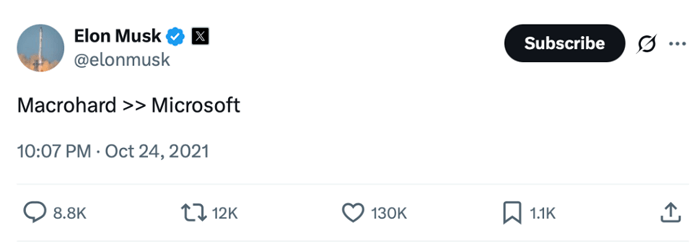 Musk’s poke at an entrenched monopoly in enterprise productivity software like Microsoft back in 2021 was pretty funny.