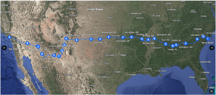 David Moss departed from the Tesla Diner in Los Angeles late December… and arrived in Myrtle Beach, South Carolina, on the last day of the year.