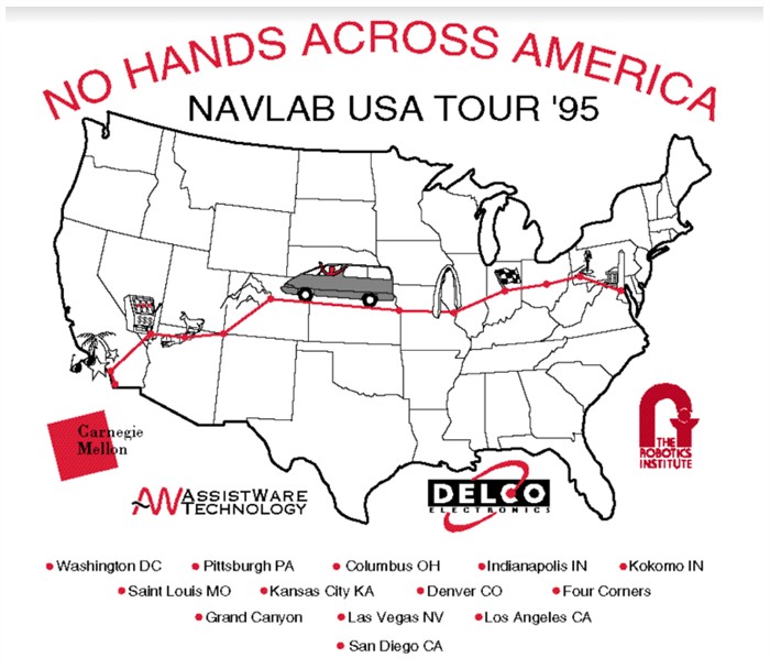 “No Hands Across America” is considered the first attempt at an autonomous cross-country trip in the U.S.