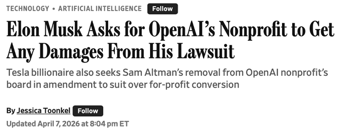 And smartly, just a few days ago, Musk amended his lawsuit to award any damages won against Altman, Brockman, and OpenAI to the nonprofit arm of OpenAI.