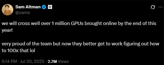 And it’s clear where that capital is headed. It’s going into data centers filled with GPUs and other AI accelerators. Altman has said OpenAI expects to have more than one million GPUs online by year-end.