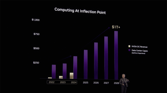 NVIDIA CEO Jensen Huang made the point this week at the GTC conference in his keynote. Data center capital expenditure (CapEx) forecasts for the future have increased. Regardless of efficiency improvements, almost all previous forecasts have been too conservative.