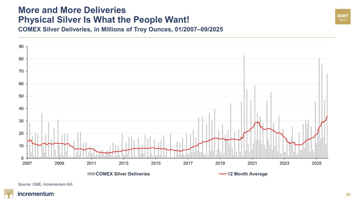 When physical premiums diverge meaningfully from paper prices, it tells us that demand for immediate delivery is rising and that availability is constrained. Futures contracts, after all, are financial instruments. They’re promises. Most are never settled with actual metal.