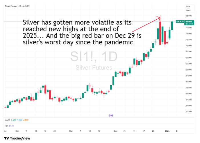 Over the past few weeks, silver market volatility has surged to levels we haven’t seen since the pandemic. On December 29, silver suffered its worst single-day decline since 2020. Large, violent swings have become the norm rather than the exception.