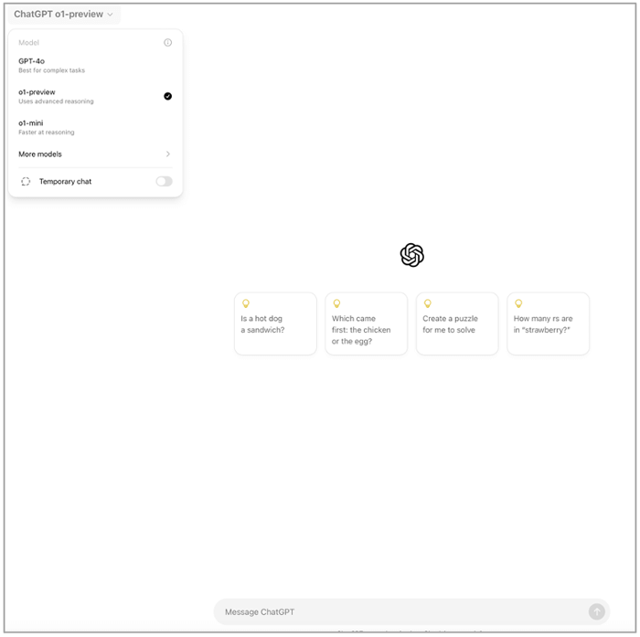 OpenAI released a preview of its latest LLM “o1.” And anyone who subscribes to ChatGPT can select it and experiment with a preview of the latest model.