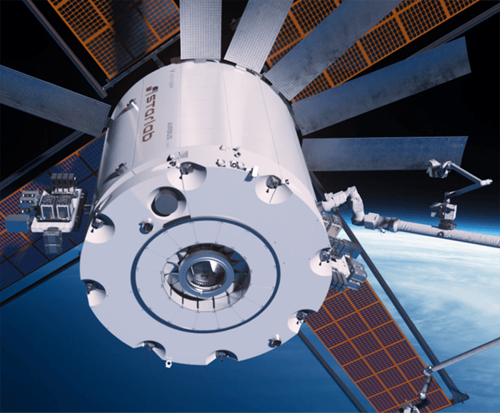 The Starlab is a metallic spacecraft that is 17 meters long and 7.7 meters wide with a pressurized volume of about 450m3, which is about half as much as the ISS.