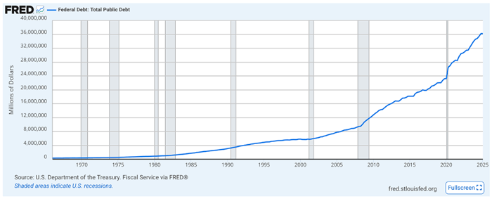 Sadly, this fiscal year’s budget in the U.S. was already in place last year (fiscal year runs October 1, 2024 – September 31, 2025). And while a lot of progress is being made in cutting this wasteful spending, it will still take a couple of years for those cuts to dramatically reduce the deficit.