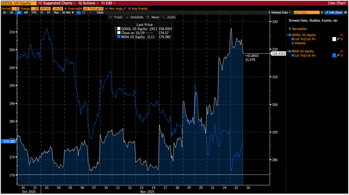 1-Month Charts of NVIDIA (NVDA) and Alphabet (GOOGL)