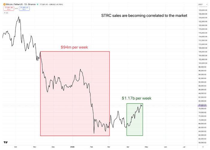 Strategy climbed out of its negative mNAV setup last week because the market is buying STRC in droves.
