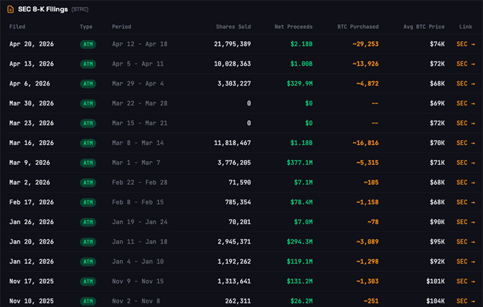 Strategy offers new shares of MSTR stock in the open market. The proceeds from these sales go towards buying Bitcoin.