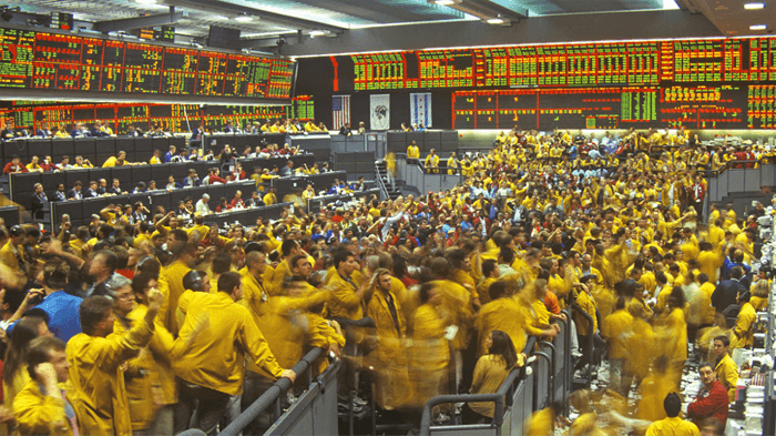 This was the open outcry trading pit. It’s where traders would relay buy and sell orders using verbal shouting and hand signals.