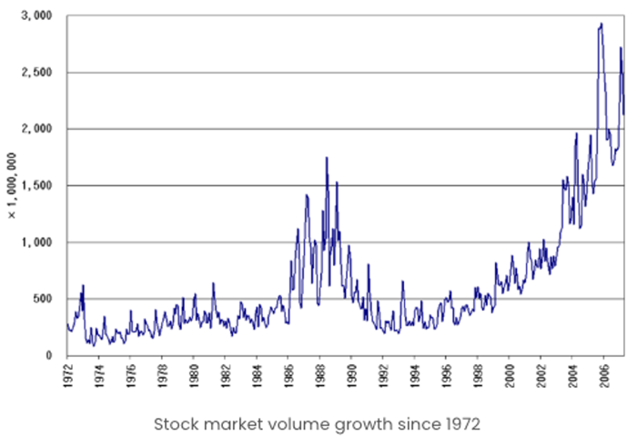 The result was more trades, faster execution, and an explosion in trade volumes. Here’s a chart showing the growth in trade volumes.